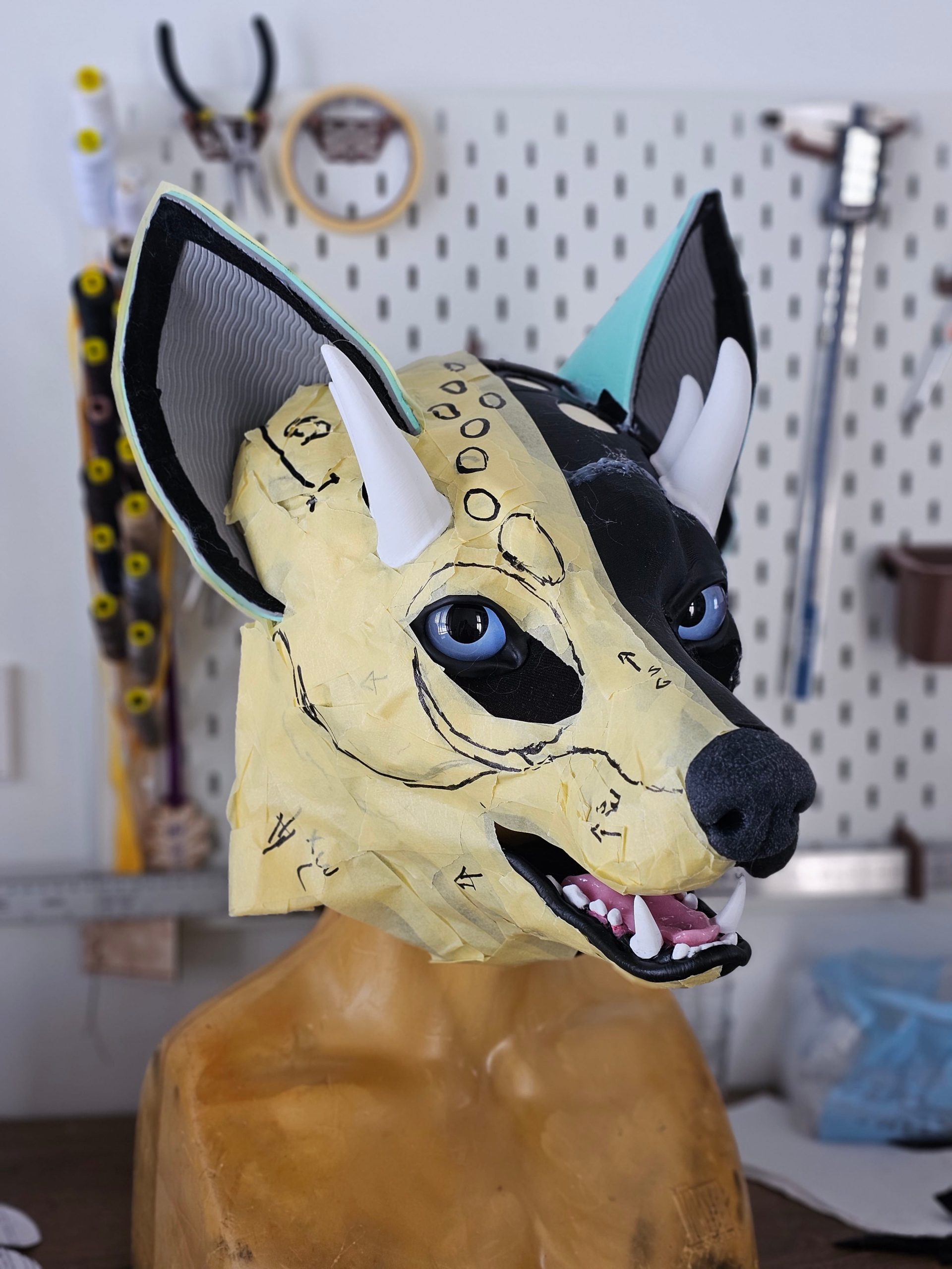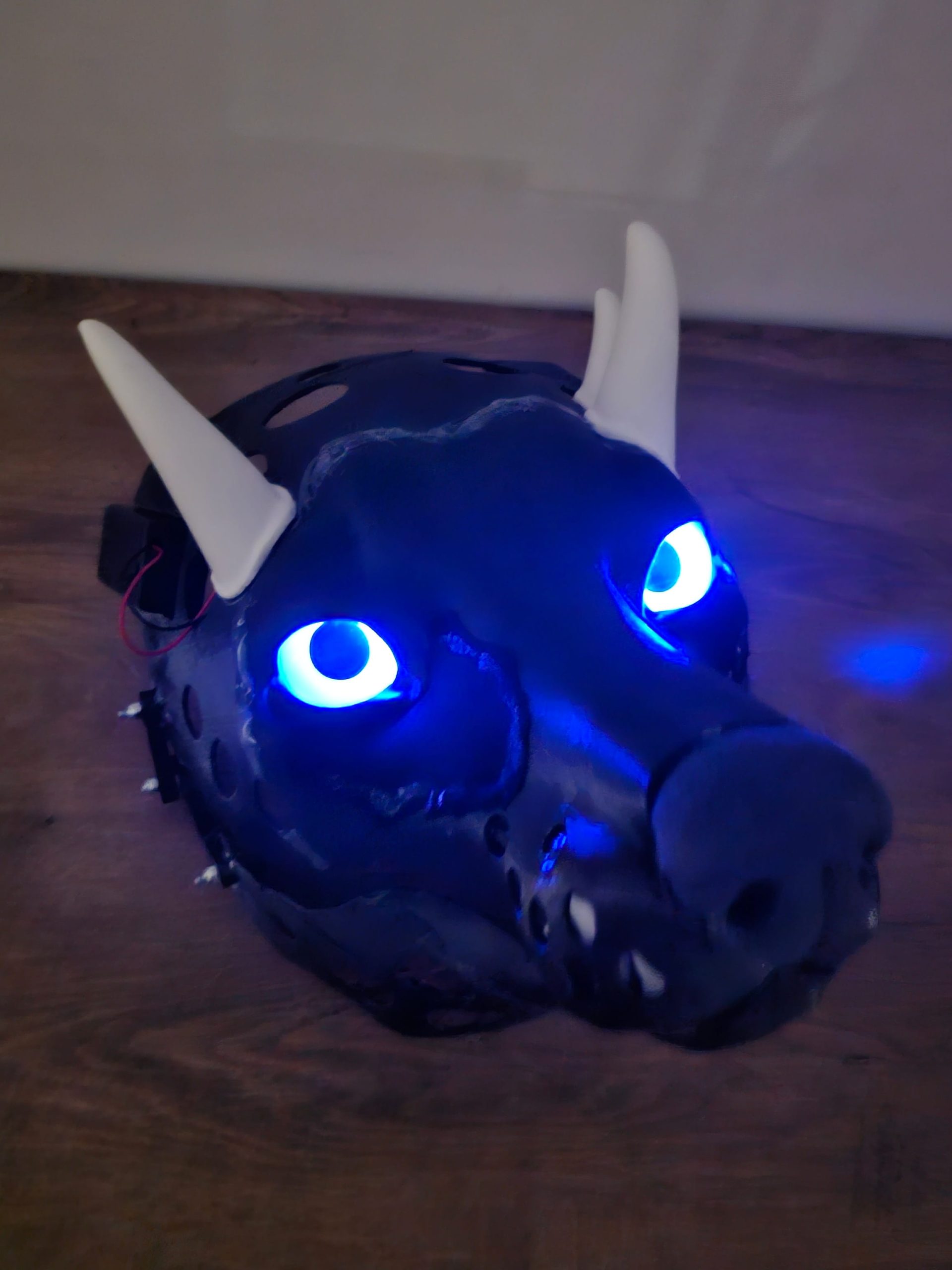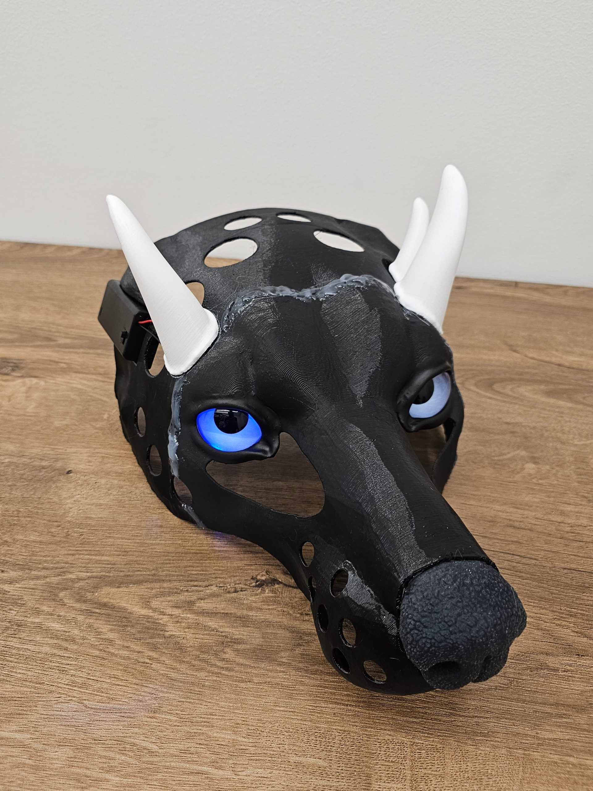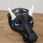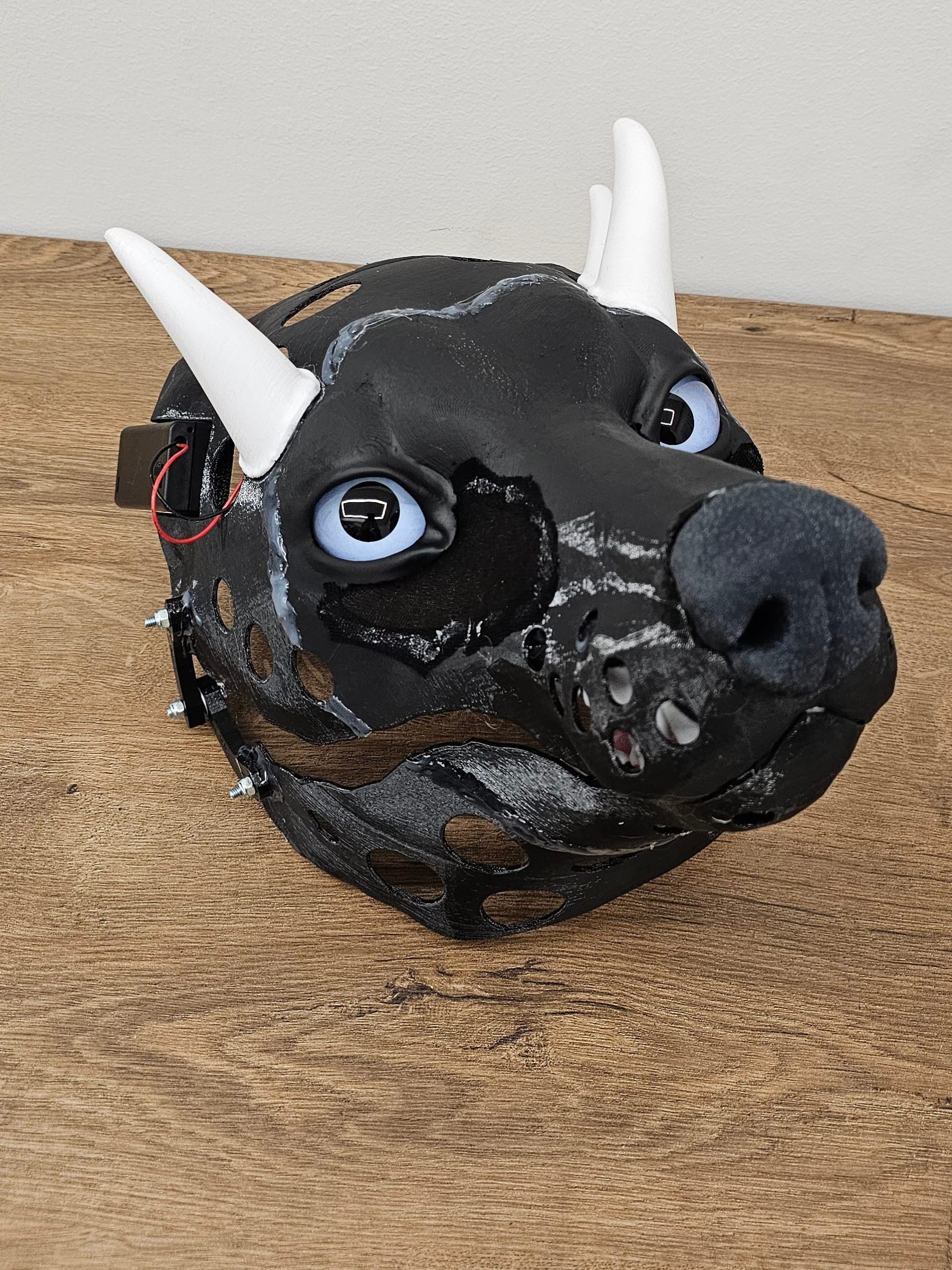 Notes: Base parts ready; silicone parts ready, working on the jaw and modelling horns. Waiting for the confirmation on the eye color/pupil size.