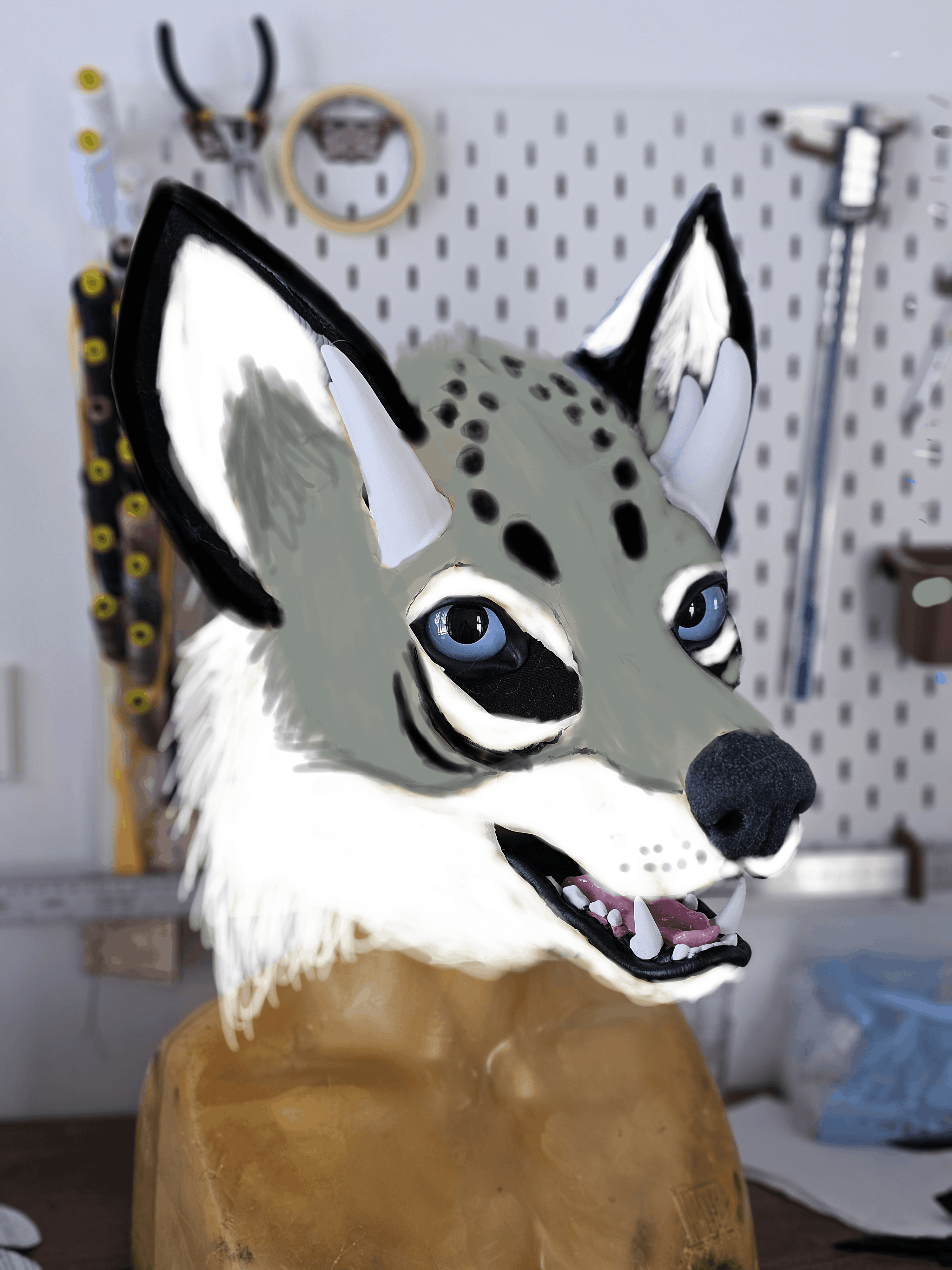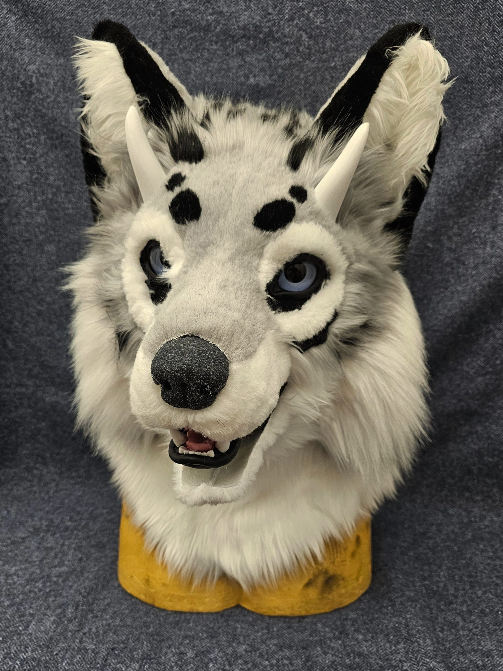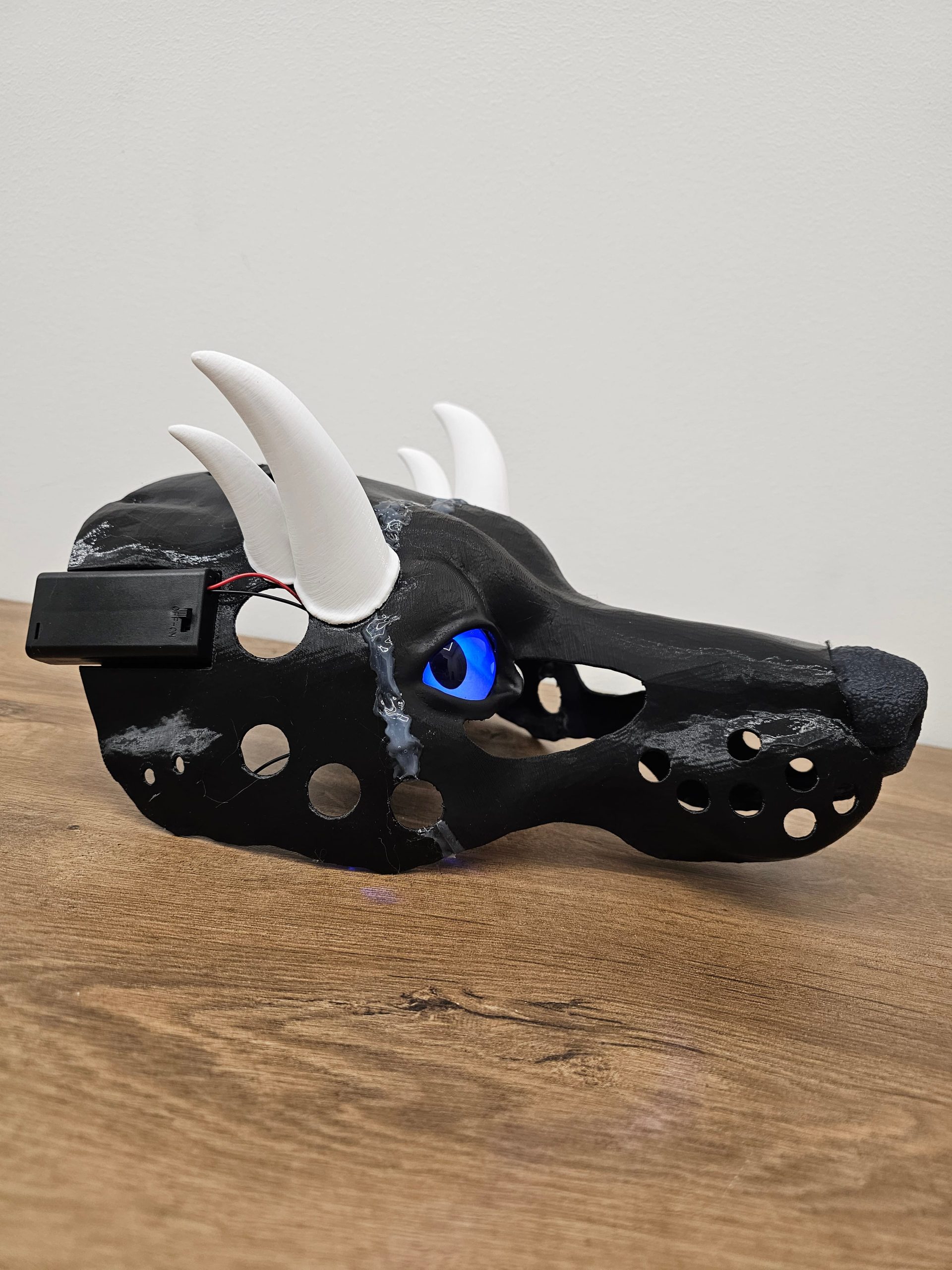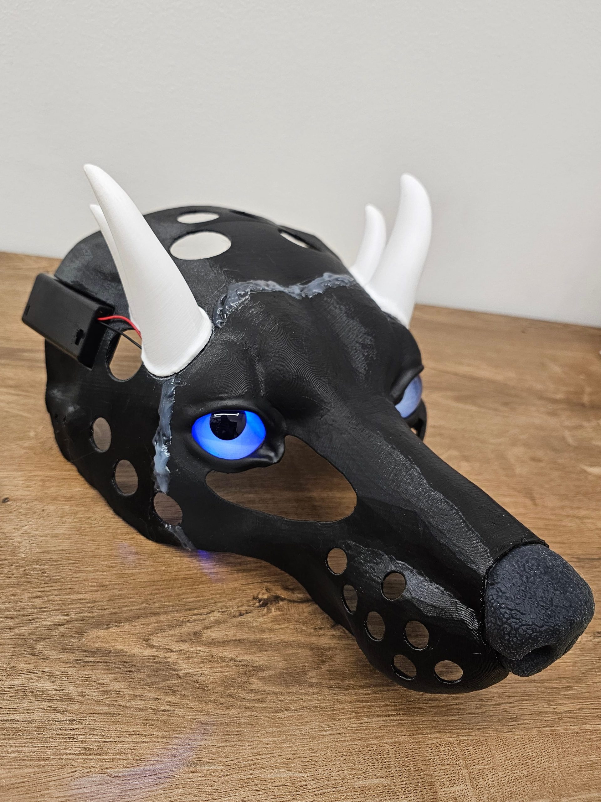 Notes: Base parts ready; silicone parts ready, working on the jaw and modelling horns. Waiting for the confirmation on the eye color/pupil size.
